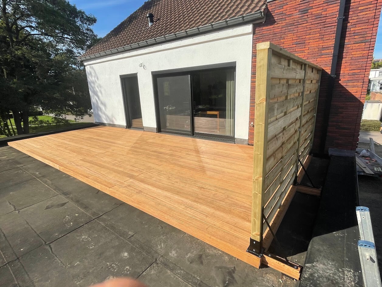 Wij zijn gespecialiseerd in het plaatsen van houten terrassen. Deze terrassen plaatsen we zowel op een vaste grond als op verstelbare voeten, de planchetten kunnen blind of in het zicht bevestigd worden.